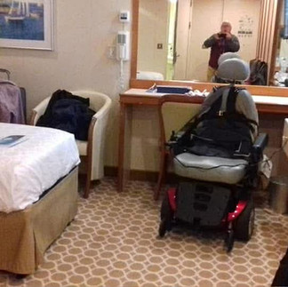 My first cruise with my powered wheelchair, and Phil.